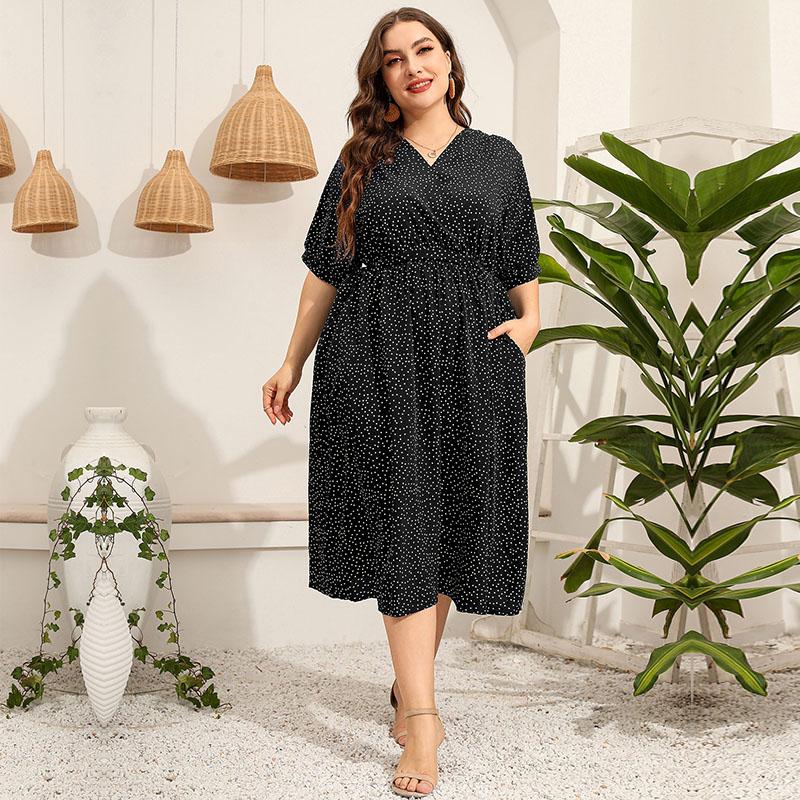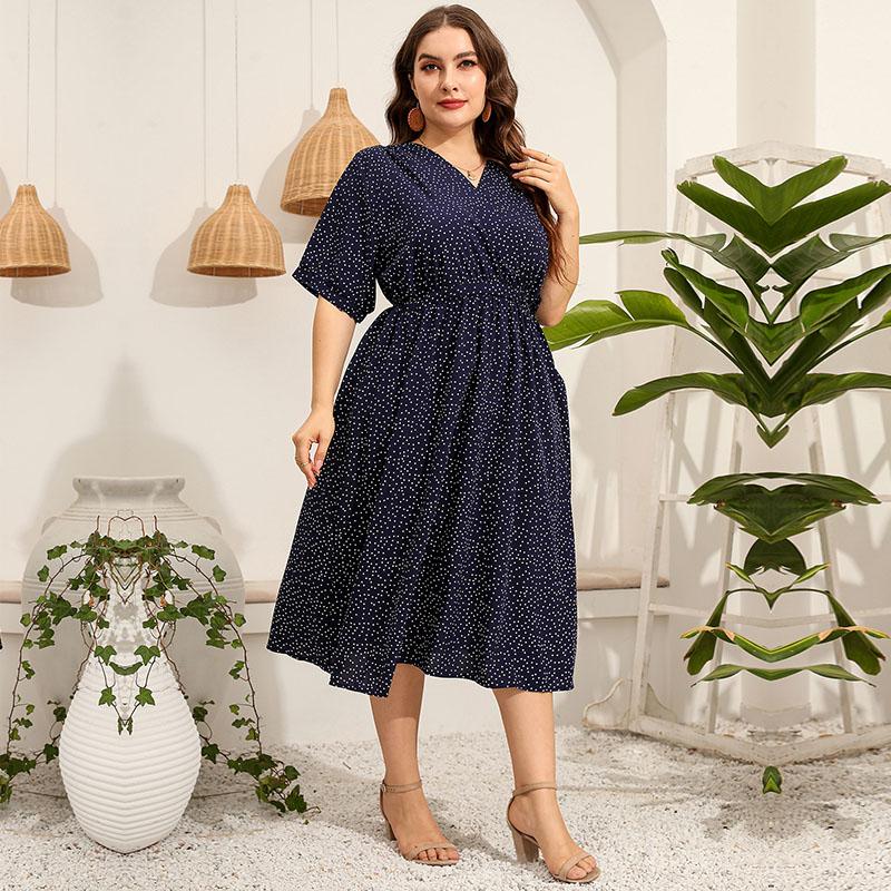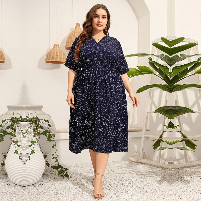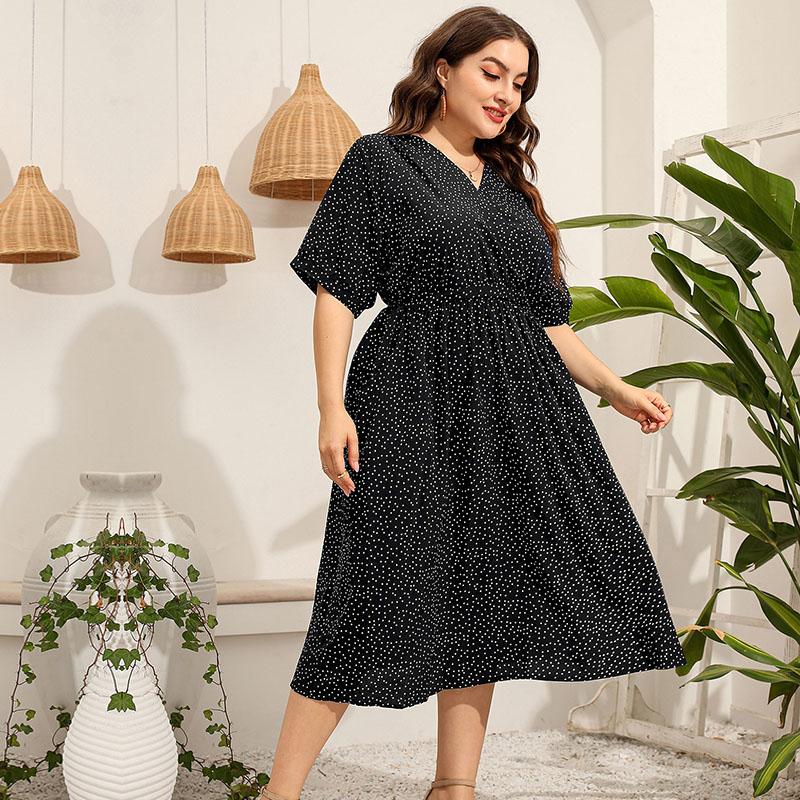 Женская туника больших размеров с v-образным вырезом и короткими рукавами, облегающее длинное платье в горошек, XL-5XL