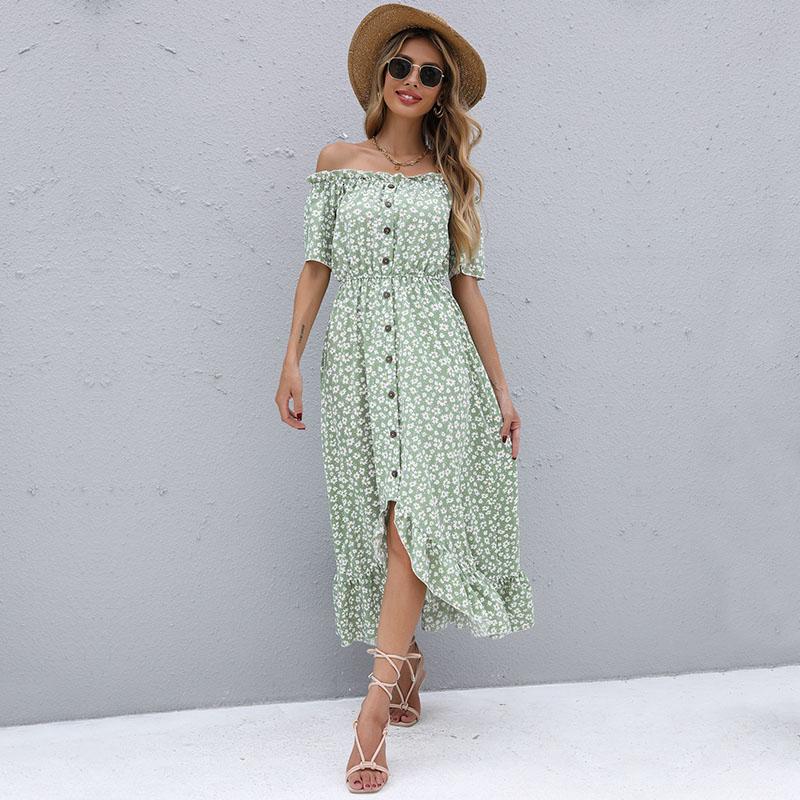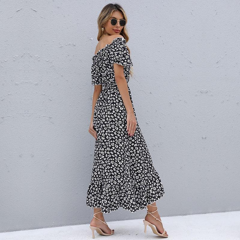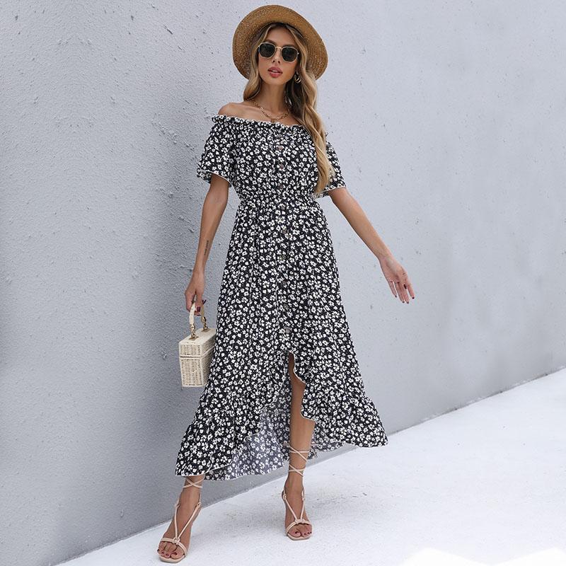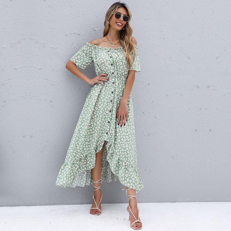 Женское летнее повседневное длинное платье с коротким рукавом и высокой талией, нерегулярное длинное платье с цветочным принтом, S-XL