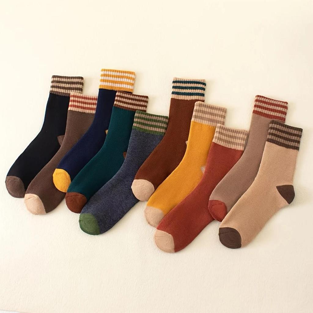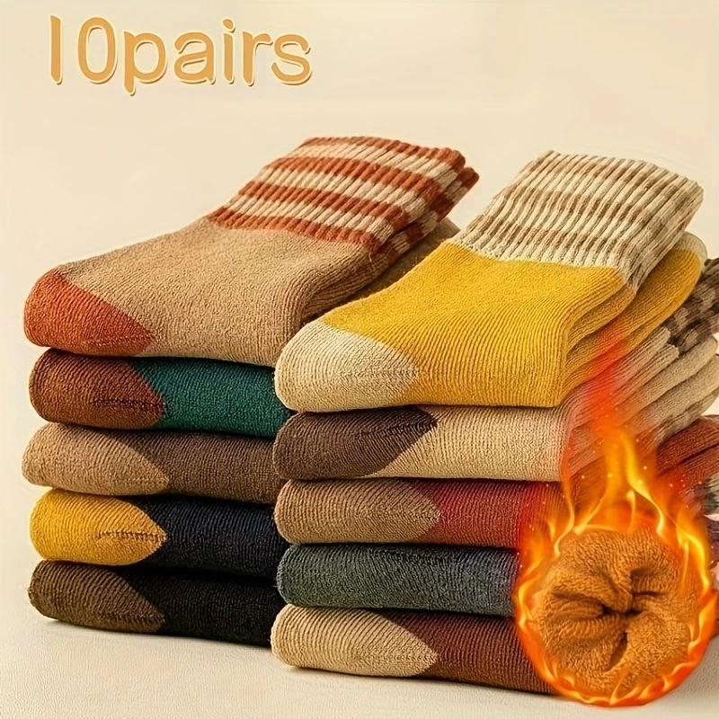 10 пар мужских и женских зимних толстых носков, мягкие и удобные, с цветной строчкой, спортивные, идеально подходят для зимы