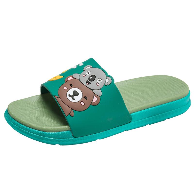 Новые тапочки женские для улицы летние домашние комнатные зеленые мультяшные мишки милые износостойкие для ванной прохладные тапочки