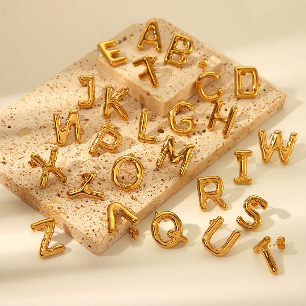 Трендовые серьги-пусеты «Сделай сам» с 26 буквами неправильной формы – Летняя нержавеющая сталь
