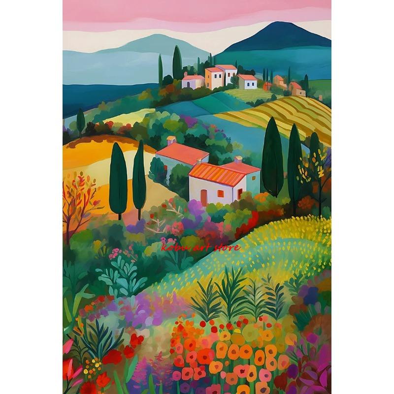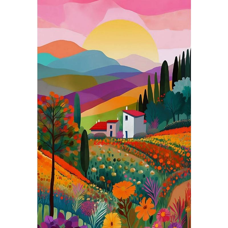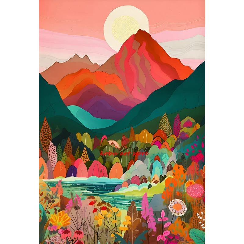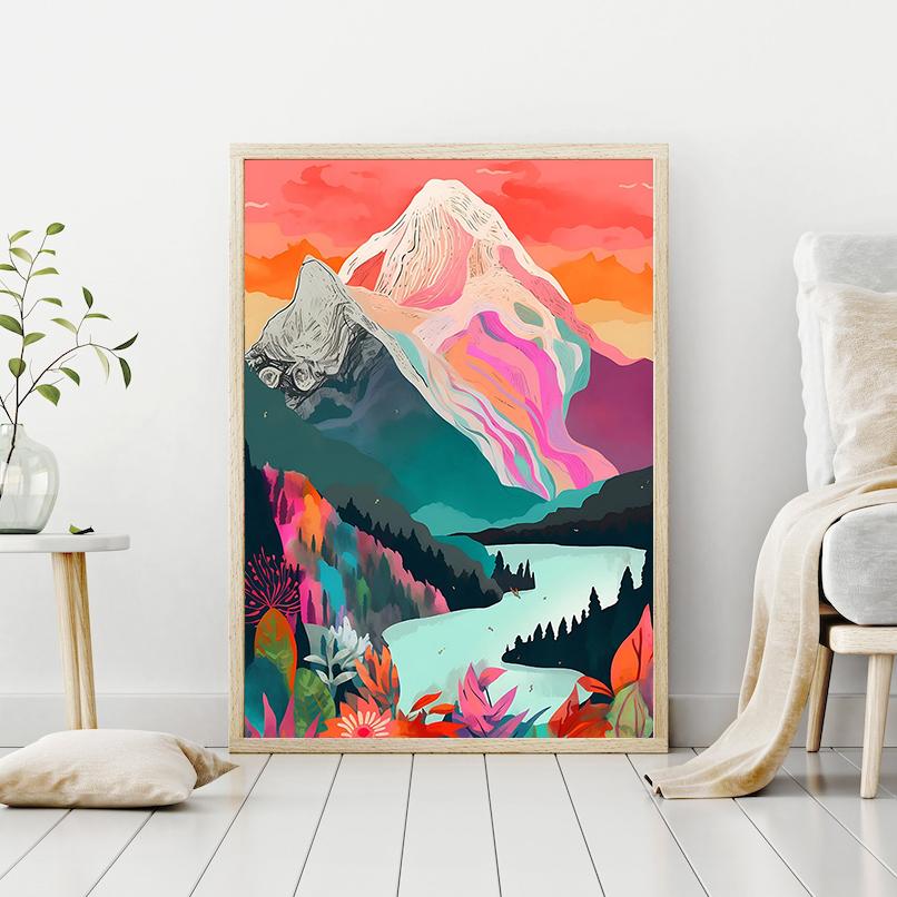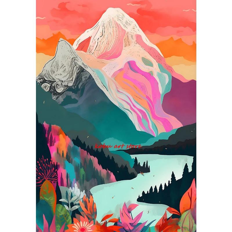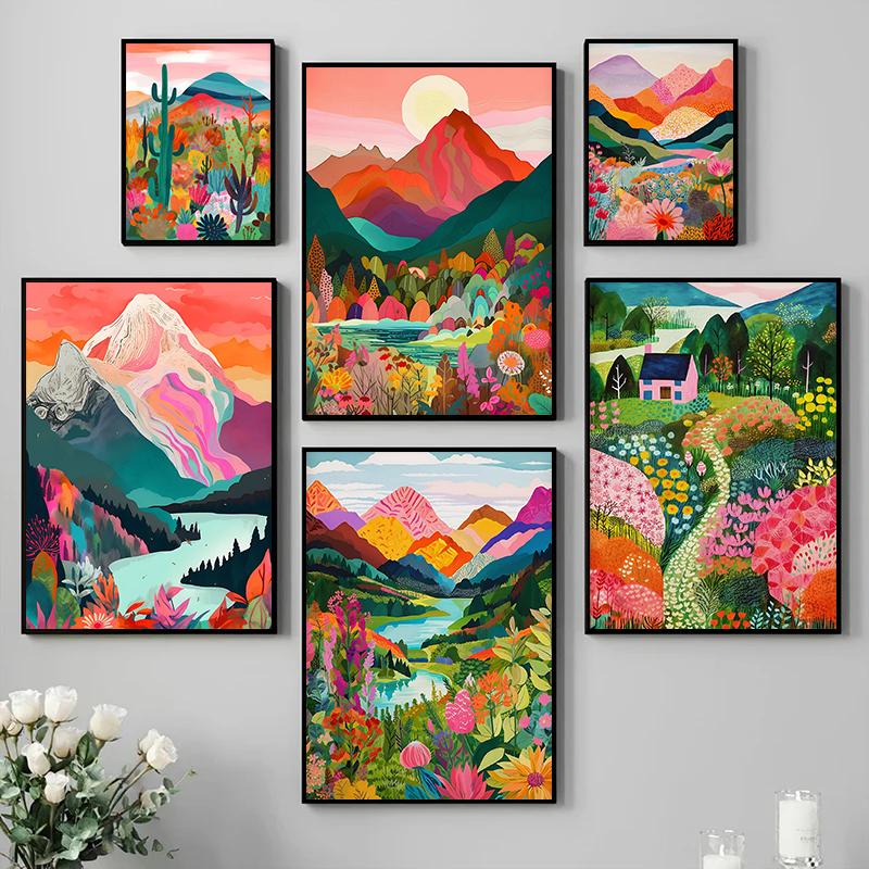 Красочный Абстрактный Пейзаж Розовая Гора Цветочный Пейзаж Постеры Принты Холст Картина Настенные Картины для Гостиной Домашний Декор