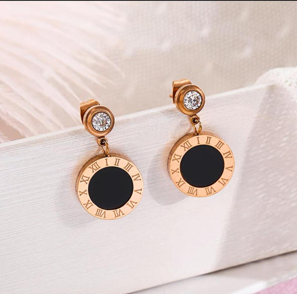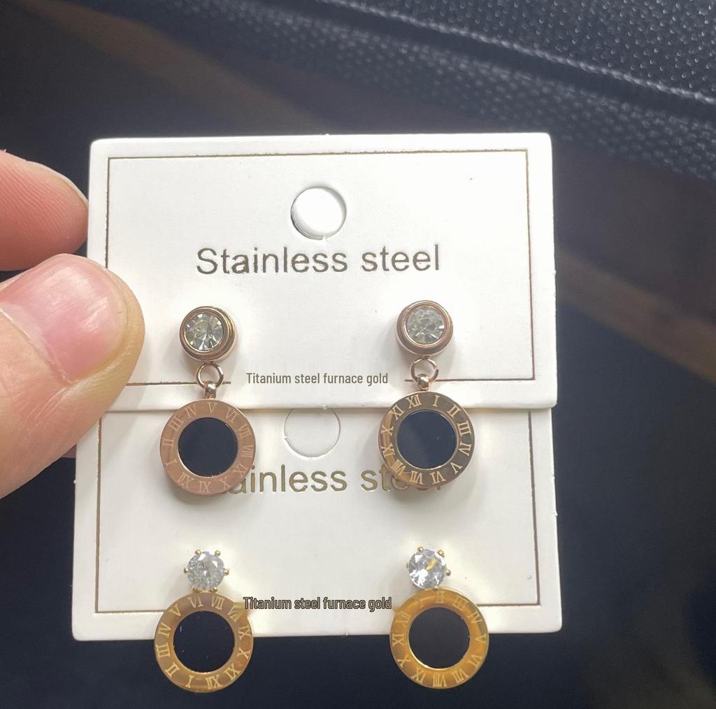 Черные серьги-пусеты с круглыми стразами, титановая сталь с покрытием из розового золота, простые женские украшения в корейском стиле
