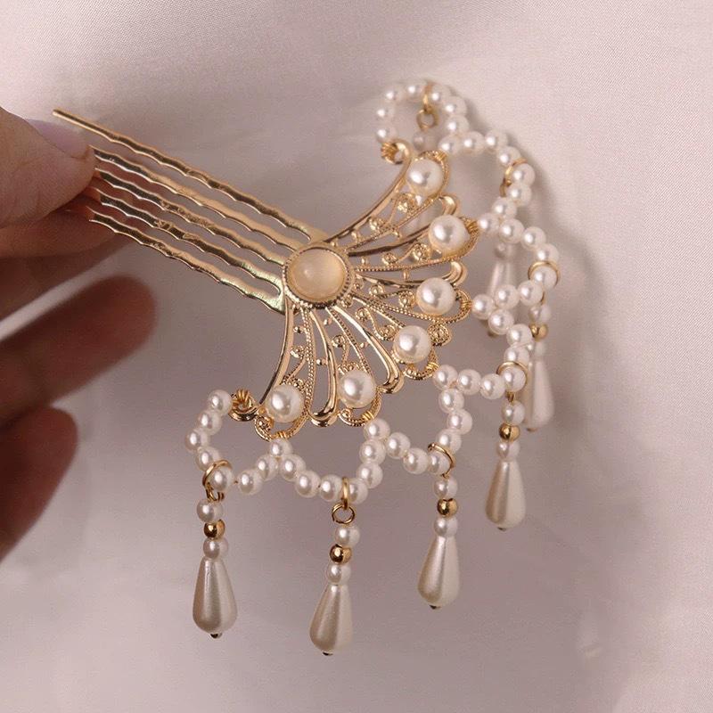 Жемчужная заколка для волос с кисточкой: Ретро головной убор Ханфу в древнем стиле Тан-Мин