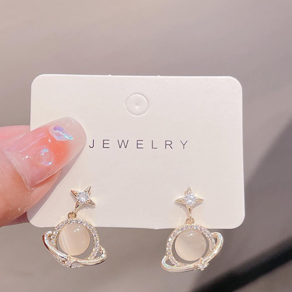 2024 Серьги-пусеты 'Планета' из камня 'кошачий глаз', трендовые, игла из серебра 925 пробы для женщин — купить товар онлайн с бесплатной доставкой по всему миру!