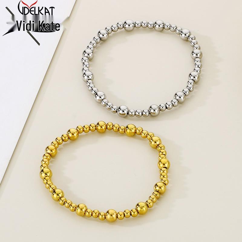 Браслет из нержавеющей стали с круглыми бусинами с покрытием из 18-каратного золота - Европейский и американский стиль, Легкая роскошь