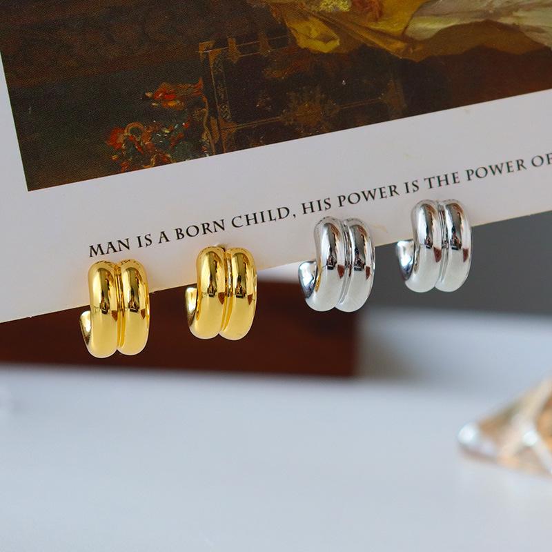 Шикарные серьги в форме буквы С: Ретро-люкс, простой и универсальный европейско-американский дизайн с серебром 925 пробы