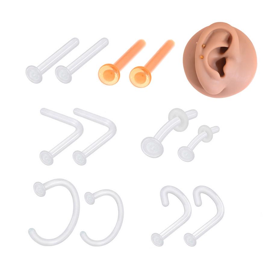 Прозрачный цвет Стекло C-образный L-образный пирсинг кольцо для носа - Невидимая изогнутая штанга Украшения для носа