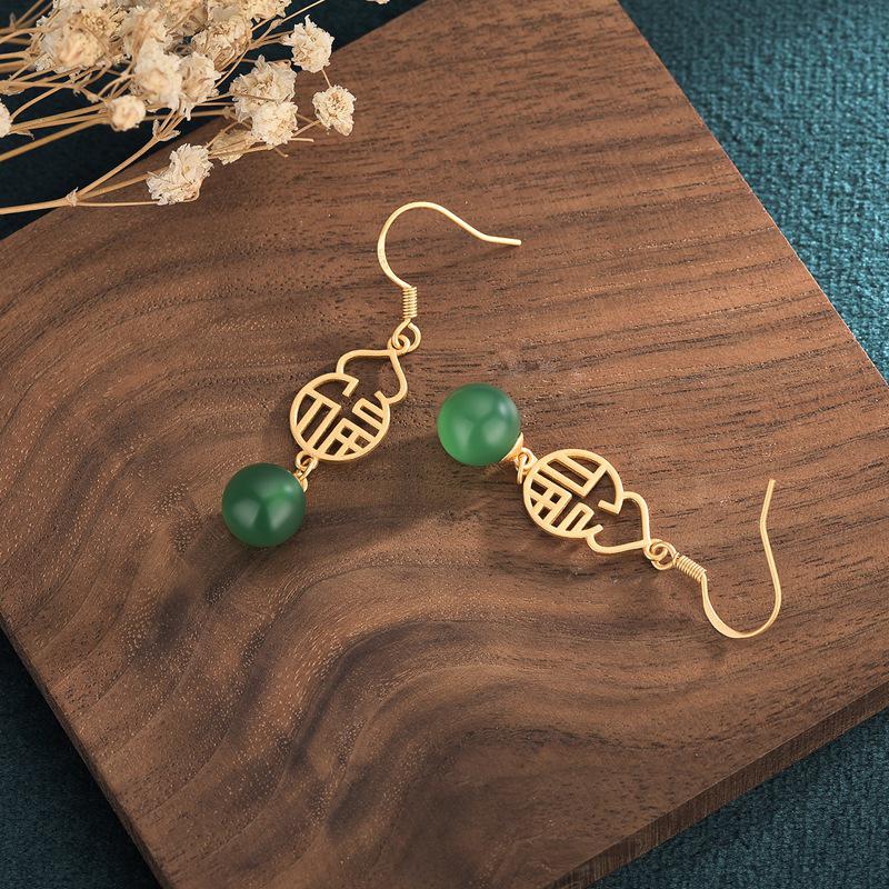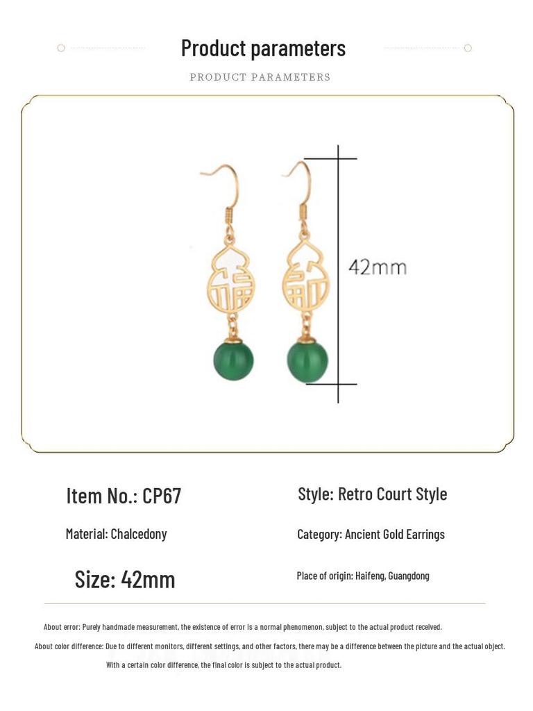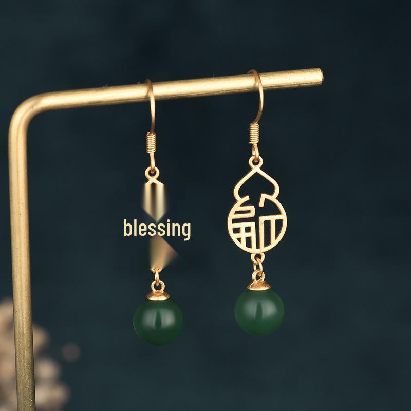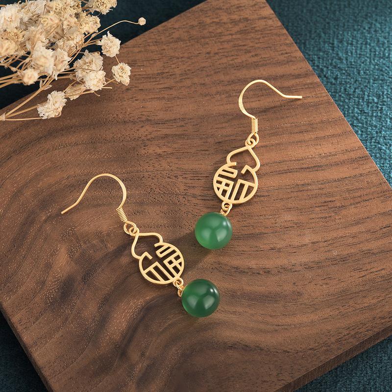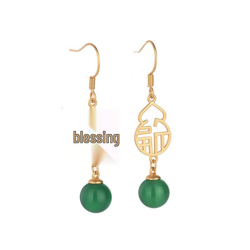 Креативные серьги-пусеты в национальном стиле фу лу с позолотой, с халцедоновым яшмовым тыквой для женщин