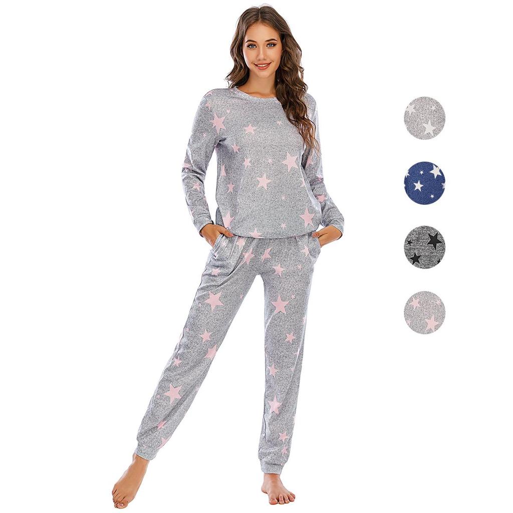 --ФУНКЦИОНАЛЬНЫЙ И УДОБНЫЙ - Дамы симпатичные джемми с милым звездным мотивом; В то время как свободная, прямая пижама ног длинные низы с эластичным поясом для удобной посадки, идеальный наряд вне службы для ранней ночи или ленивого дня, ночь для девочек? Купите нашу подходящую пижаму, чтобы сделать ночь незабываемой.