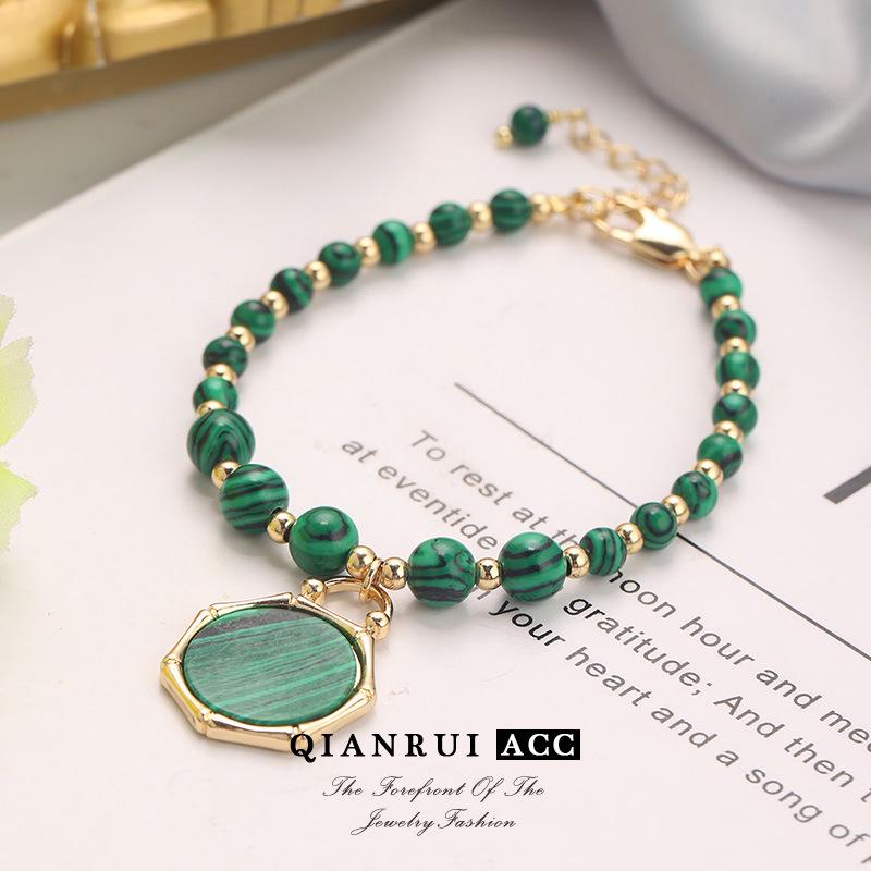 Винтажный браслет из малахитового стекла с французским зеленым узором