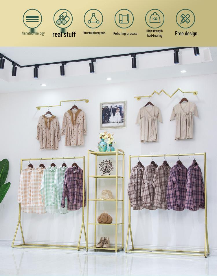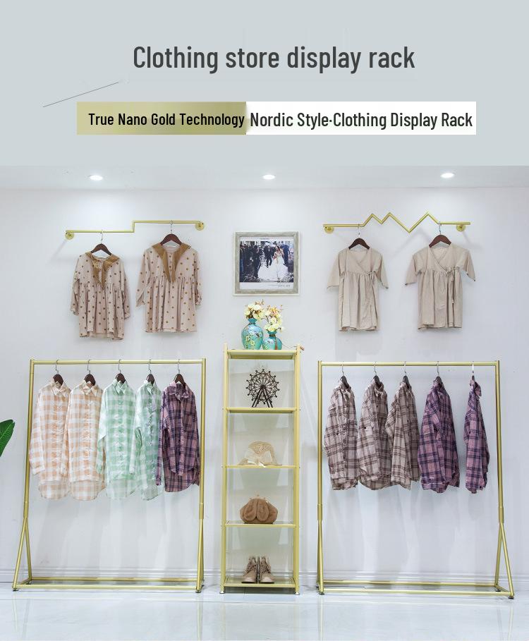 Mannequin Display Rack: Women's Clothing Store, Movable Gold Wrought Iron Hanging Rack