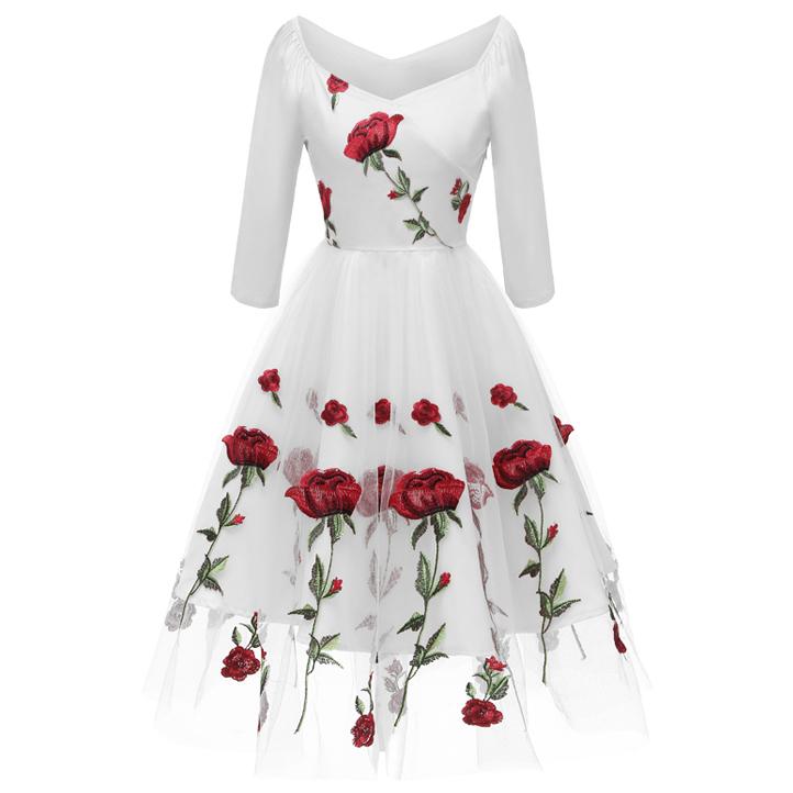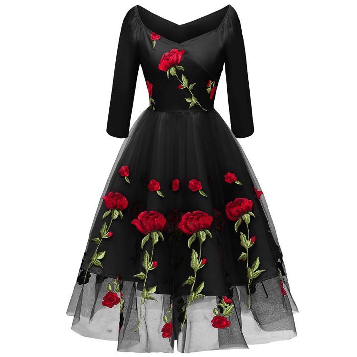 Это миди-тюль полное выпускное платье с вышивкой Red Rose делает идеальное случайное платье.