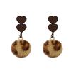 Корейские серьги-пусеты в виде матовых шариков с леопардовым сердцем из плюша для женщин - Коллекция Осень/Зима