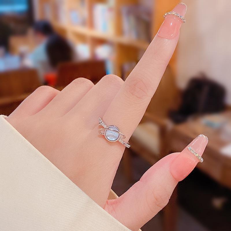 Корейское женское открытое кольцо с цирконом «Голубая планета» - Нишевый дизайн высокого класса