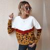 Женский осенне-зимний вязаный свитер, джемпер, пуловеры, топ с круглым вырезом, длинный рукав, леопардовый пэчворк, хаки, коричневый, серый, армейский зеленый, S-XL