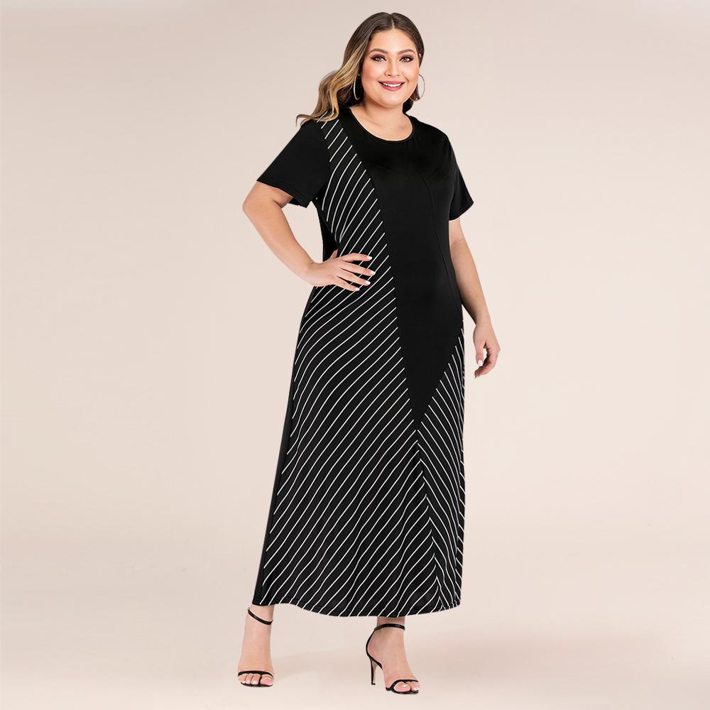 Женское весенне-летнее платье больших размеров в стиле пэчворк в полоску, свободное, прикрывающее живот, длинное платье XL-4XL