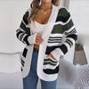 Женский осенне-зимний повседневный свитер в контрастную полоску с карманом и длинным рукавом, кардиган, пальто