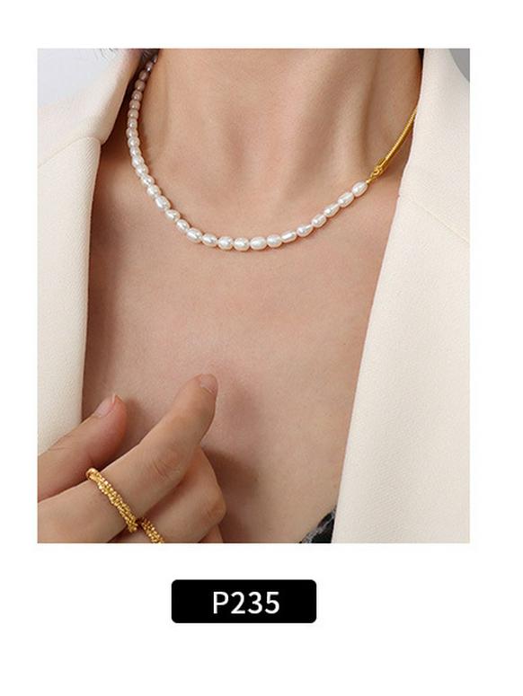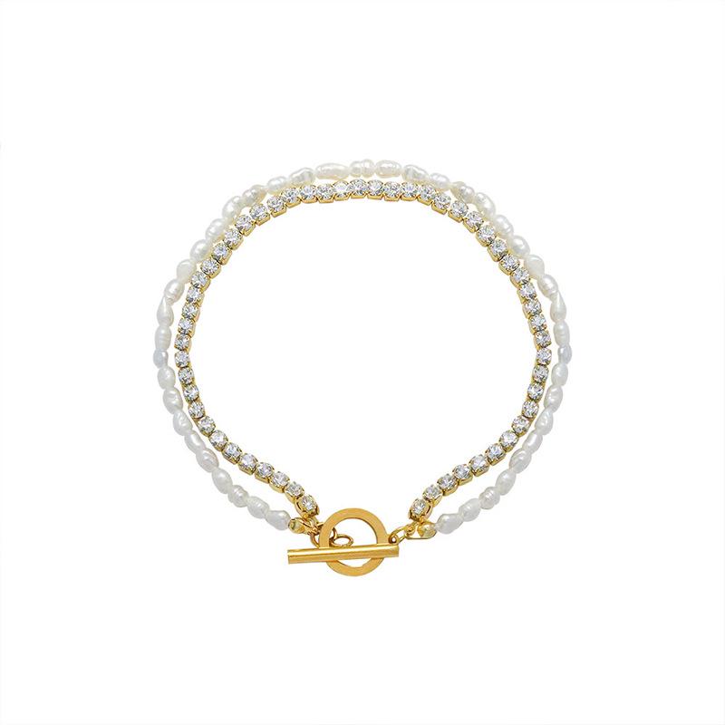 Европейский и американский минималистичный двухслойный браслет из пресноводного жемчуга и циркона из титановой стали 18К E286