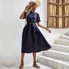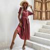 Весна-лето женское повседневное среднее плиссированное платье с короткими рукавами и круглым вырезом в горошек с завязками и принтом