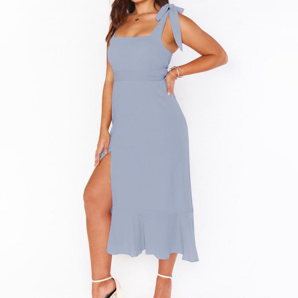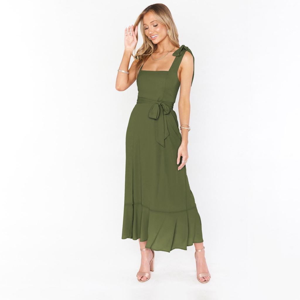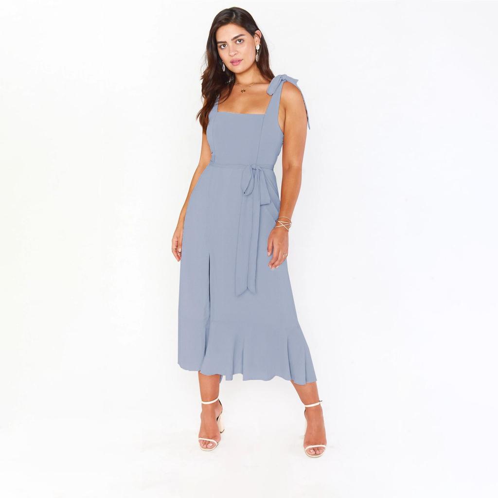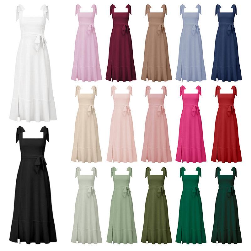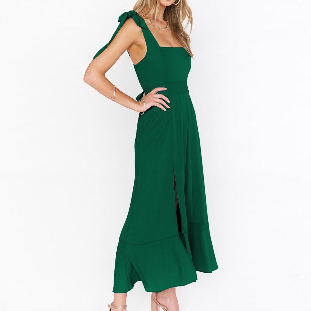 Женские летние повседневные платья трапециевидной формы без рукавов с высокой талией и длинным разрезом, платье на бретельках, сплошной цвет