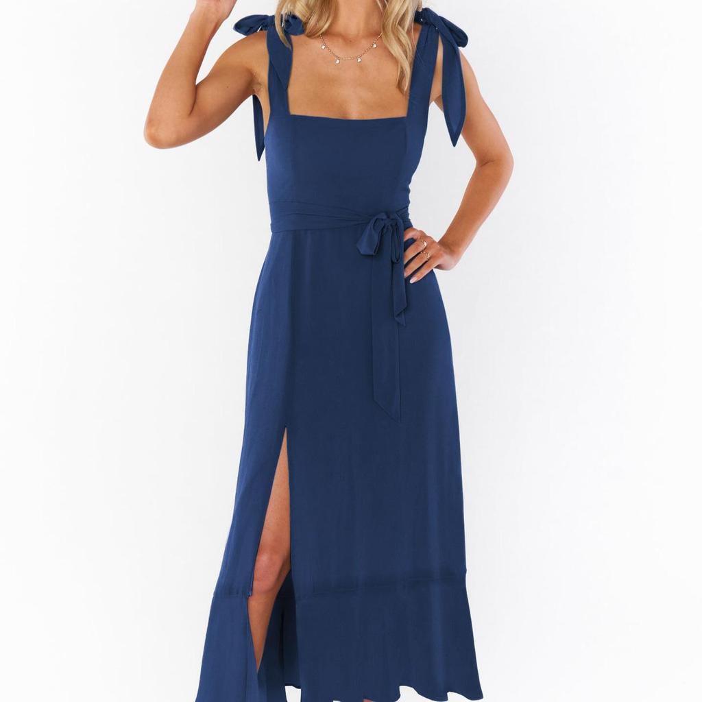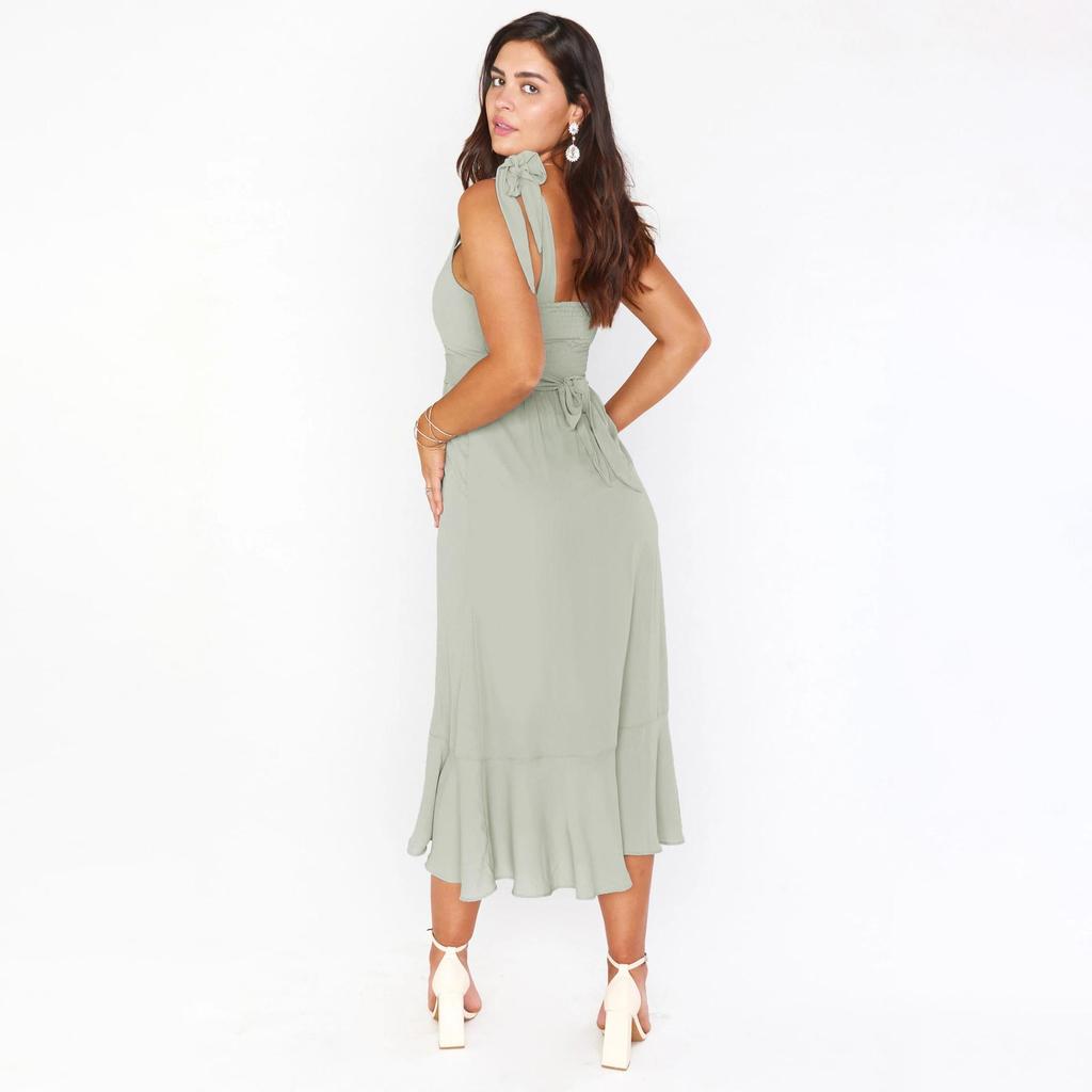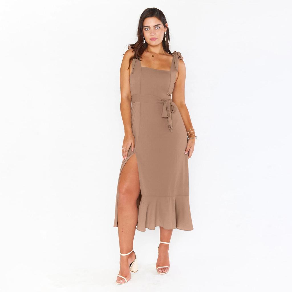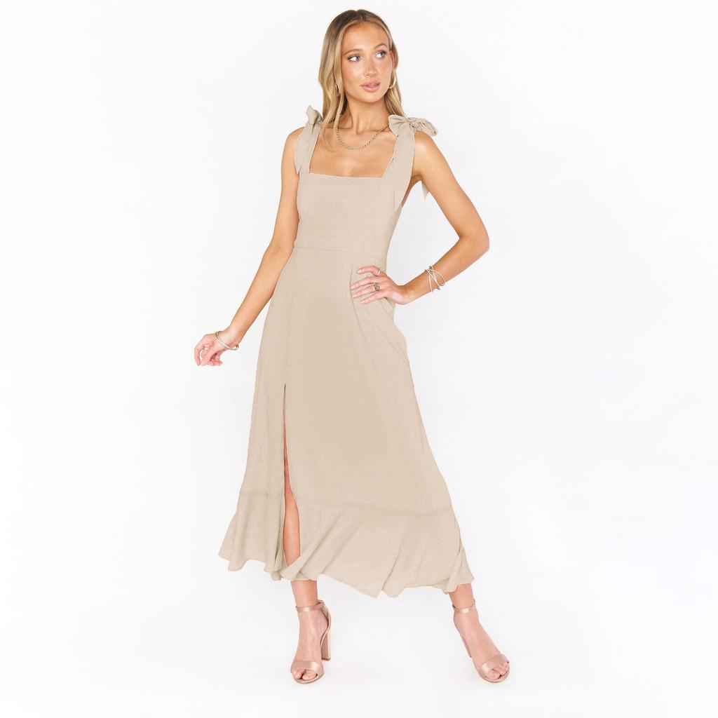 Женские летние повседневные платья трапециевидной формы без рукавов с высокой талией и длинным разрезом, платье на бретельках, сплошной цвет