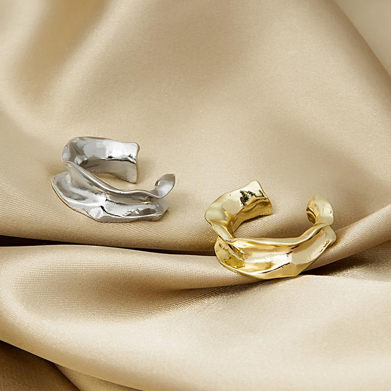 Корейское минималистичное асимметричное женское кольцо: Неровное металлическое вогнуто-выпуклое широкое кольцо