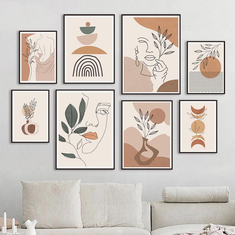 Бохо Абстрактные Линии Девушка Лист Геометрия Настенное Искусство Холст Живопись Скандинавские Минималистичные Постеры Принты Картинки Для Декора Гостиной