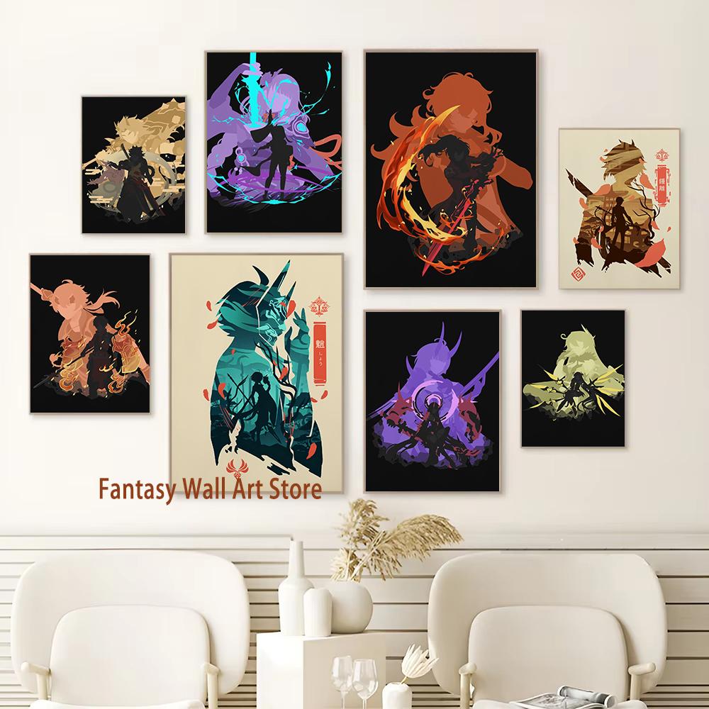 Плакат Genshin Impact Игровой принт Настенное искусство Подарок для геймеров Персонажи Genshin Impact Эстетический декор Холст Картина Игровой принт