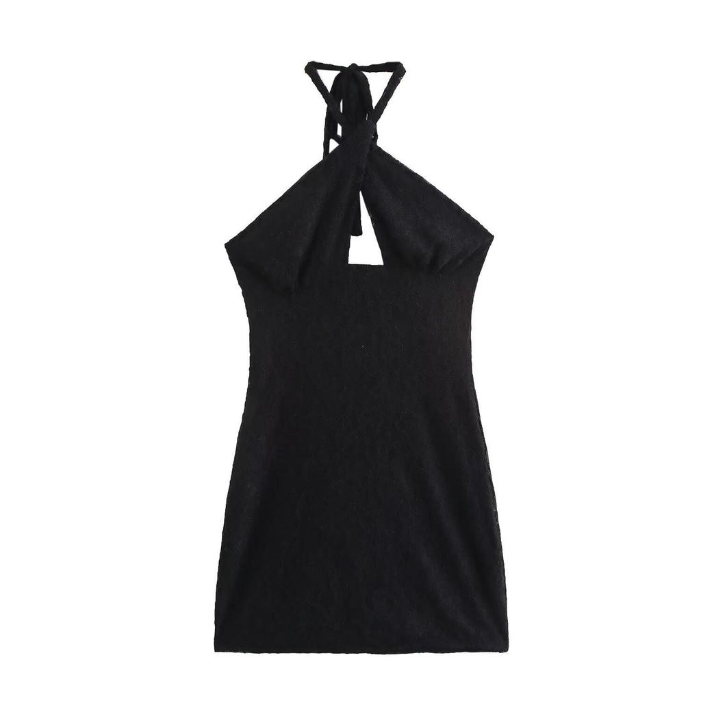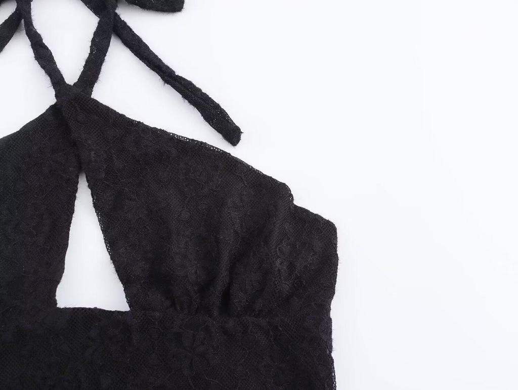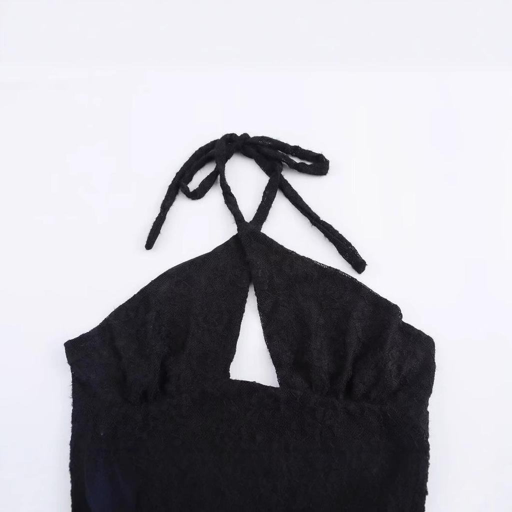 2025 Весна Стильное женское европейское и американское кружевное платье-халтер без спинки