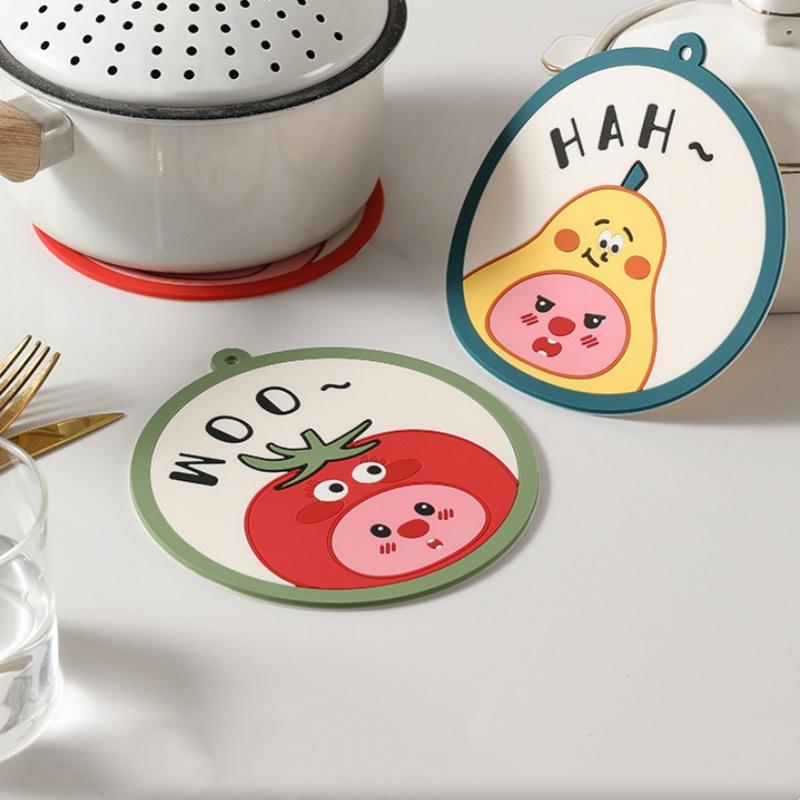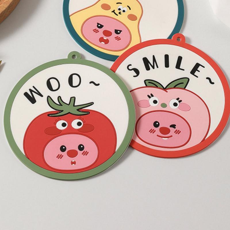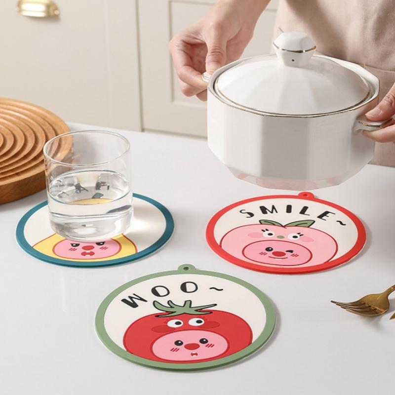 Подставки ПВХ с фруктовым узором, красочные, нескользящие, из мягкой резины, теплоизоляционные, подставки 'Томат', 'Груша', 'Персик', домашние аксессуары, кухня
