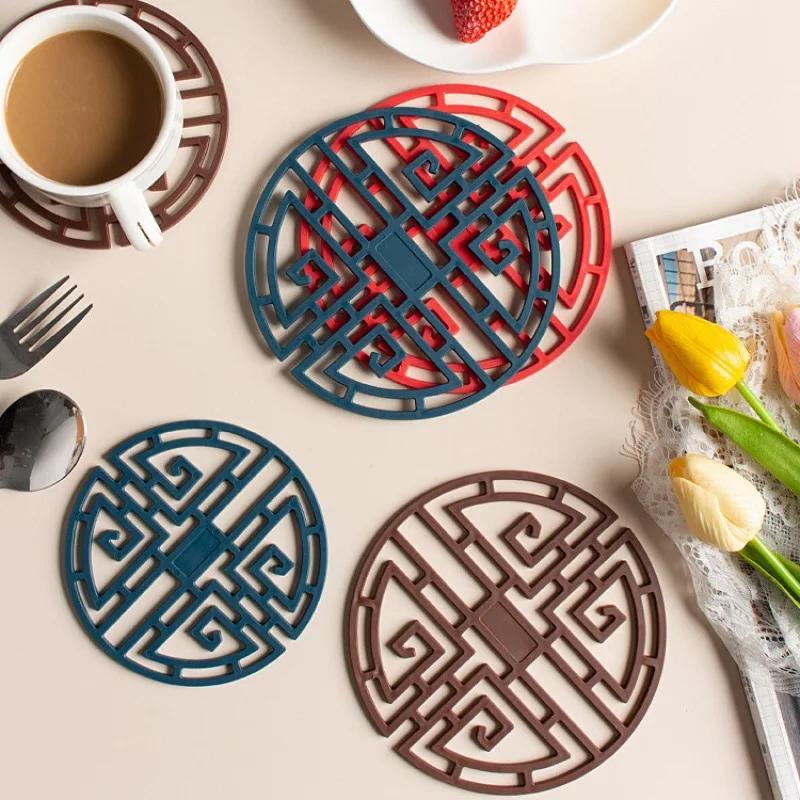 Мягкие пластиковые полые подставки в китайском стиле, теплоизоляционные водонепроницаемые коврики, подставки под тарелки, кухонные столовые приборы, чашки
