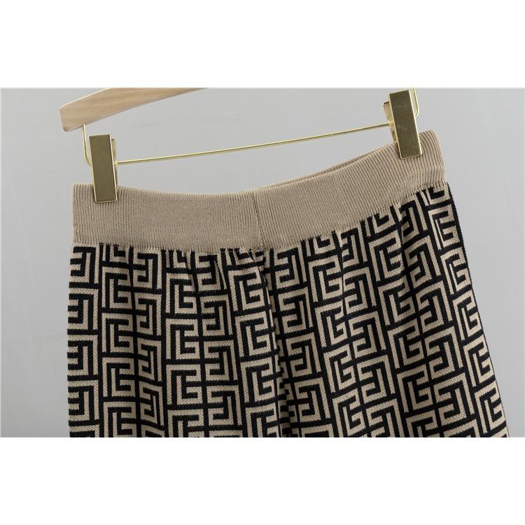 Весенние и осенние женские трикотажные комплекты. Модные повседневные комплекты. Куртка с шалью и v-образным вырезом. Нижний вязаный свитер. Широкие брюки. Комплект из трех предметов.