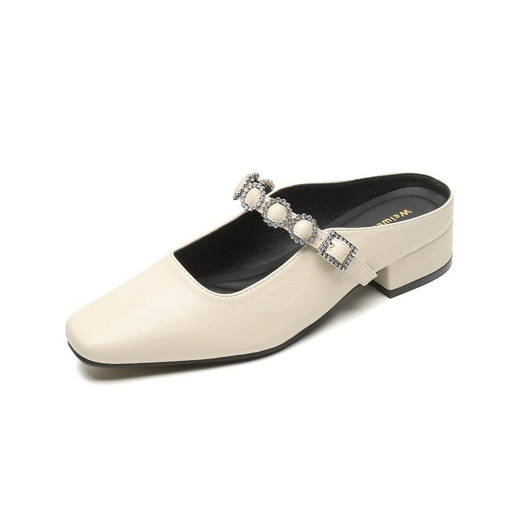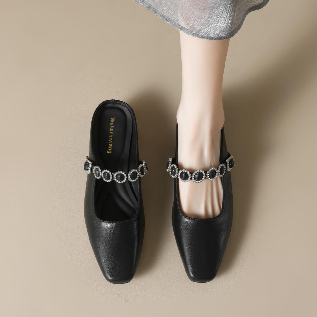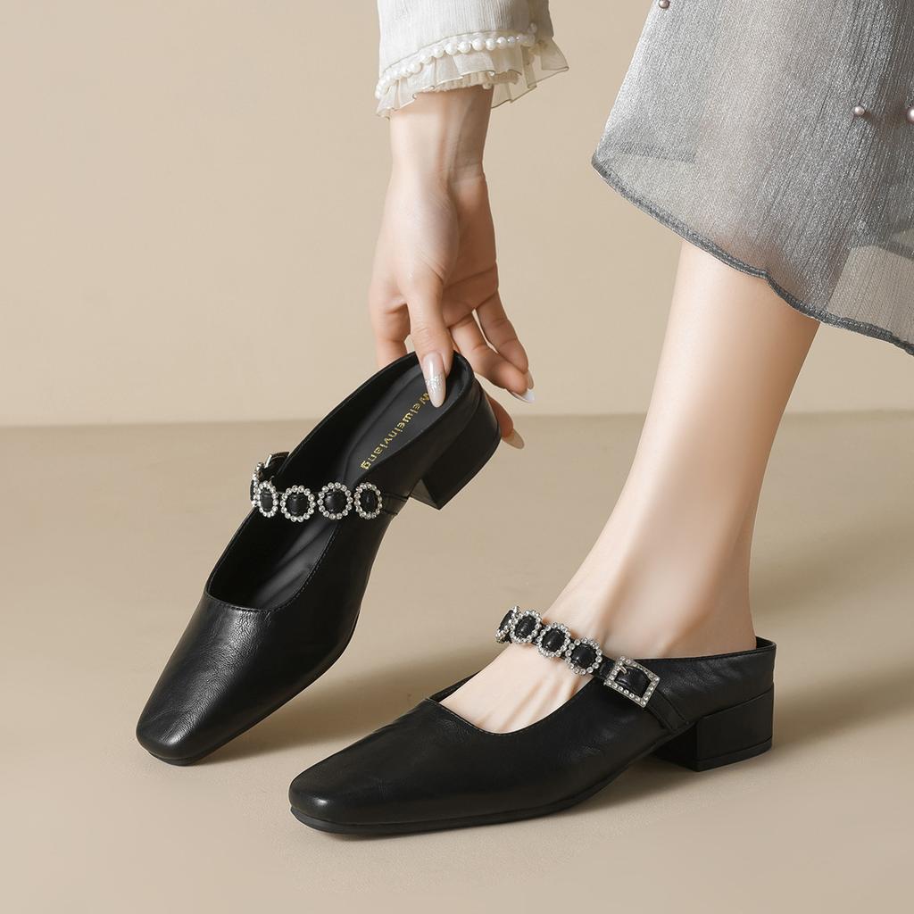 Полутапочки Баотоу, женские, со стразами, летние, тапочки с толстым каблуком для ленивых людей
