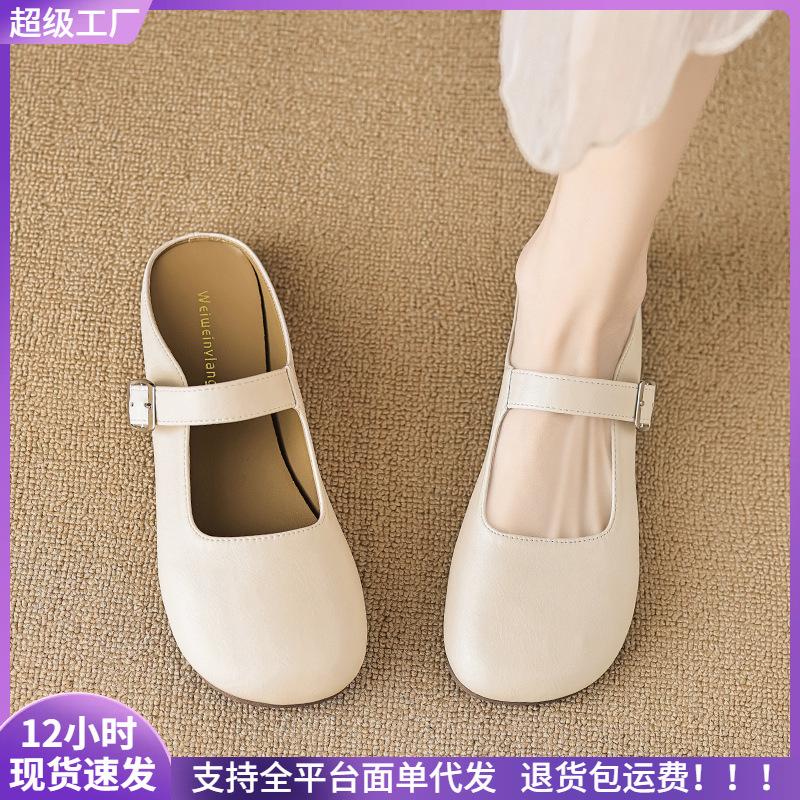 Баотоу тапочки женские летние ретро ленивые на плоской подошве полутапочки большого размера
