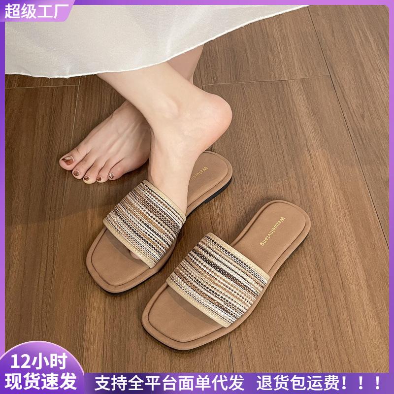 Плетеные шлепанцы на плоской подошве, женские летние, ретро, под юбку, римские прохладные шлепанцы