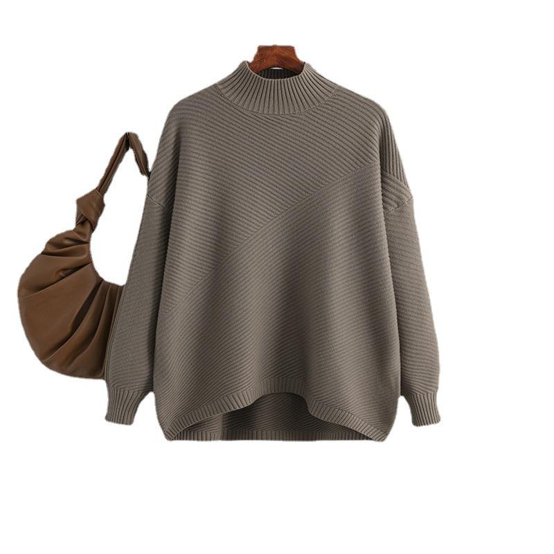 Осенне-зимний винтажный свободный топ с большими рукавами, однотонный пуловер, трикотаж, свитер с высоким воротником