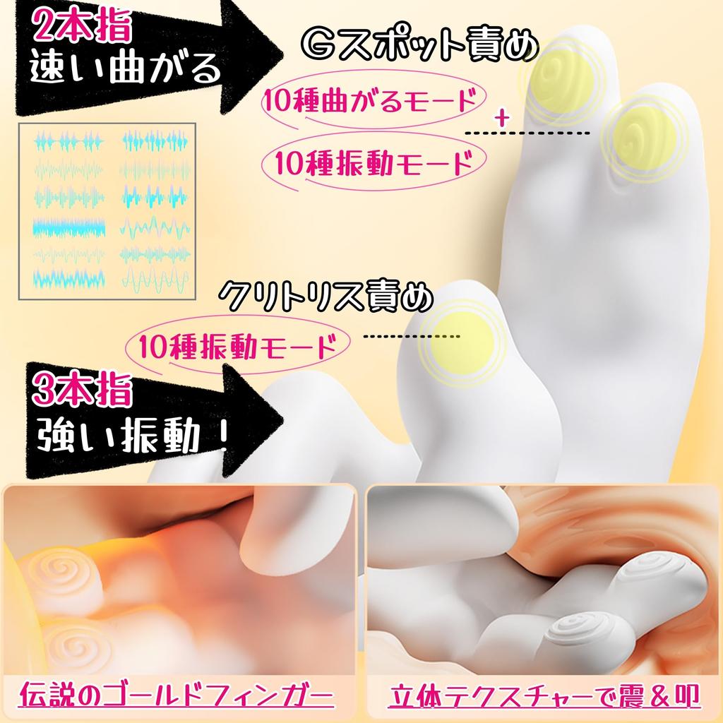 [10 типов режимов движения при изгибе + 10 типов режимов вибрации! Двойная стимуляция клитора и точки G] При стимуляции точки G «пальцевая часть» стимулирует клитор с точечной точностью. Пальцевая часть оснащена 10 типами постукивающих движений и 10 типами режимов вибрации, а часть для большого пальца также имеет 10 типов вибрационных функций.. Атакуя одновременно изнутри и снаружи, удовольствие от внутреннего и внешнего оргазма нахлынывает сразу - это поистине двойная атака удовольствия.