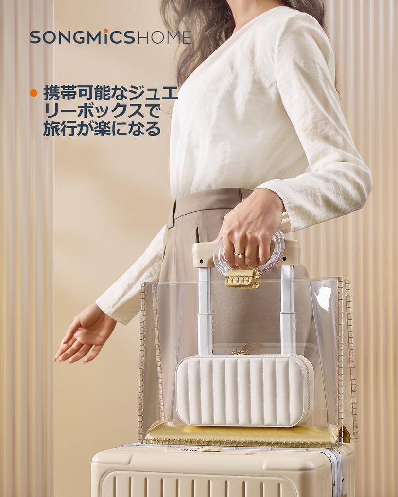 SONGMICS HOME Ювелирные изделия Портативное хранение аксессуаров Ювелирные изделия Простроченная ПУ Кольцо JBC180W01 Коробка, Чехол, Путешествия, Портативный, Коробка, Поверхность, Ожерелье, Кольцо, Держатель,