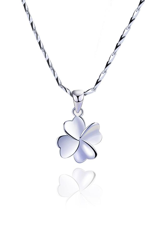 Популярное 999 45см Включая подарочную коробку [ABNII] Женское ожерелье, Четырехлистный клевер, Серебро, Цепочка, Регулируемое, Гипоаллергенное, Клевер, На удачу, Подвеска,