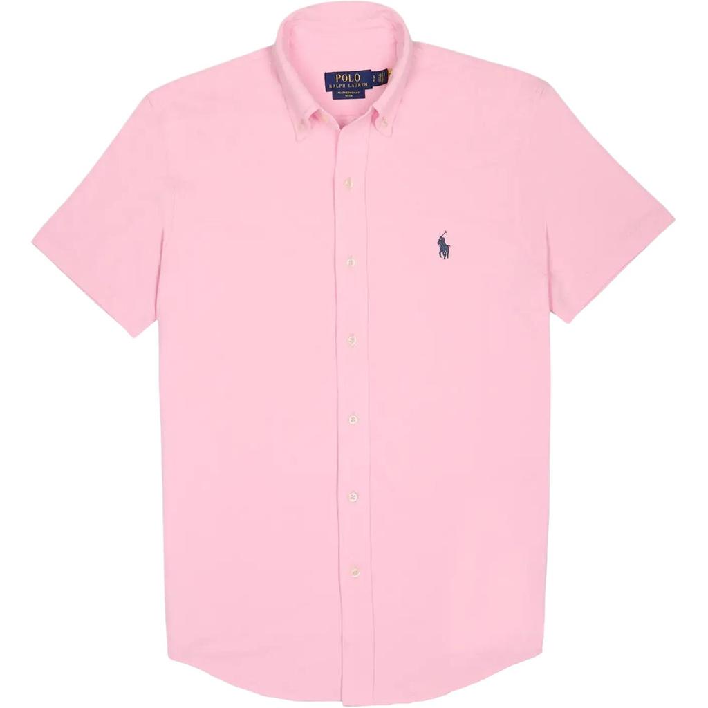 Polo Ralph Lauren SS24 Рубашка с коротким рукавом и вышивкой логотипа Pony для мужчин, розовая 710802629-001
