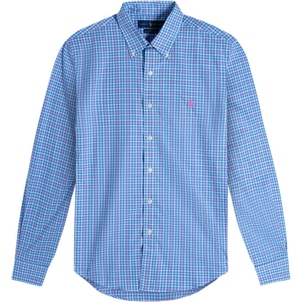 Polo Ralph Lauren Клетчатая рубашка с вышивкой логотипа Pony с длинным рукавом Мужские рубашки Синий Розовый 710789731-005