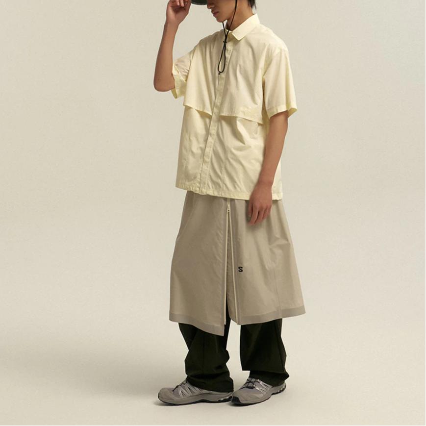 SALOMON Однотонная рубашка-поло с пуговицами, с коротким рукавом, мужская, бежевая C28139
