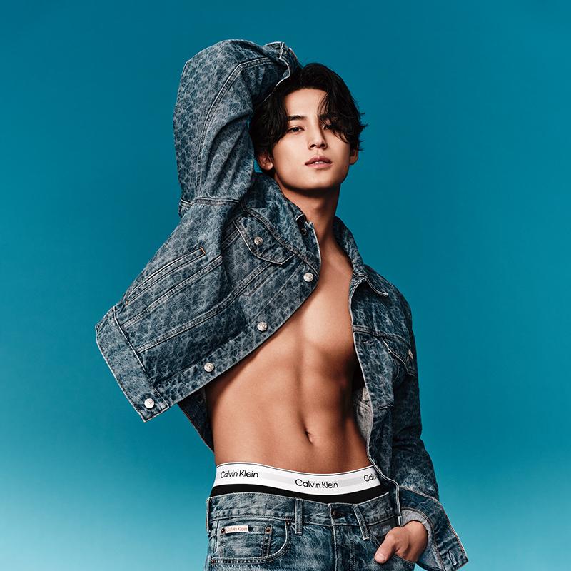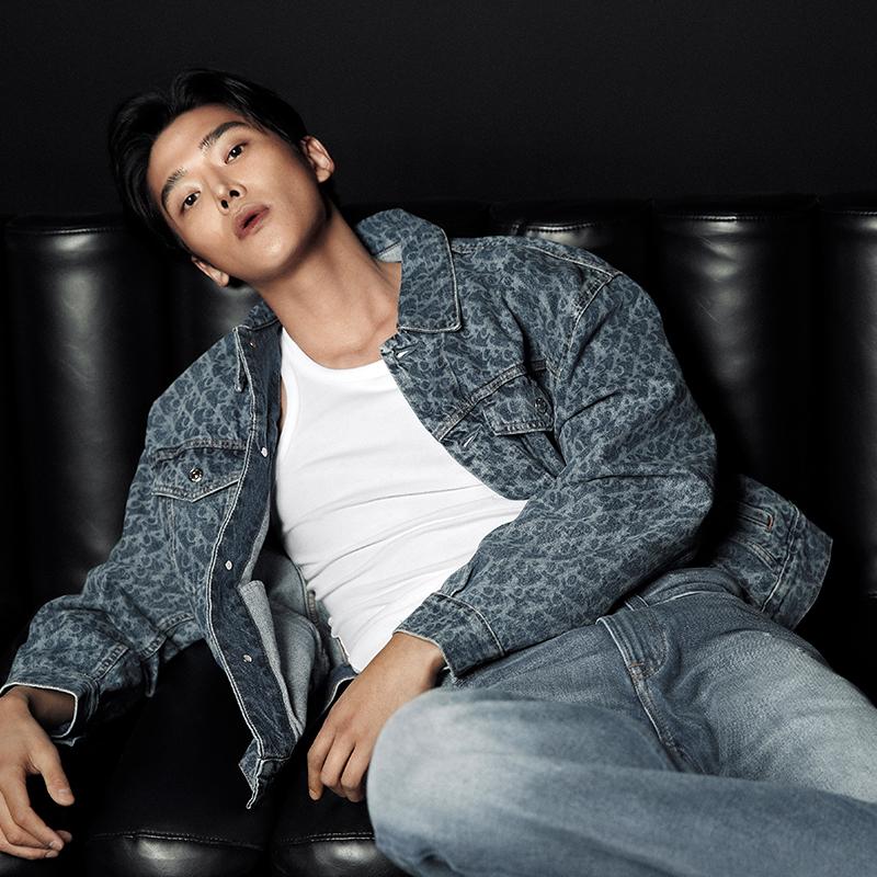 Calvin Klein Хлопковая джинсовая куртка с принтом и спущенным плечом Мужские куртки Джинсово-синий 4LB773G