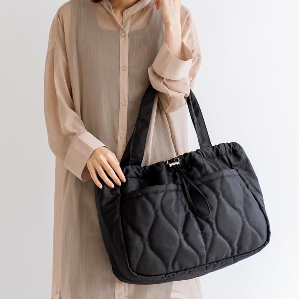Vita Felice Front Pocket 2 Type Tote Bag for Women [VITAFELICE] inb-90046z (Quilted Black)