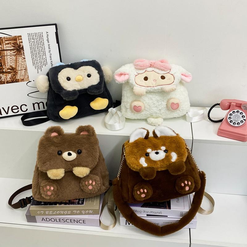 Милый рюкзак двойного назначения для девочки, бант, сумка с куклой-ягненком, сумка через плечо с мультяшным животным енотом