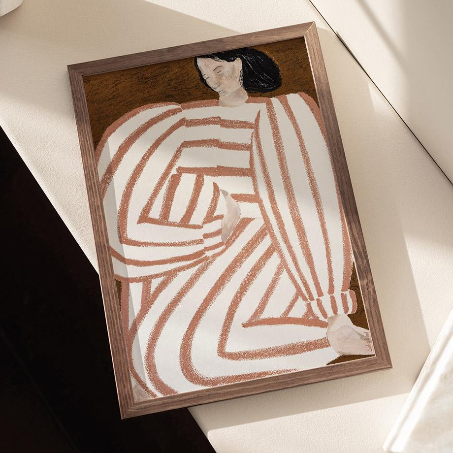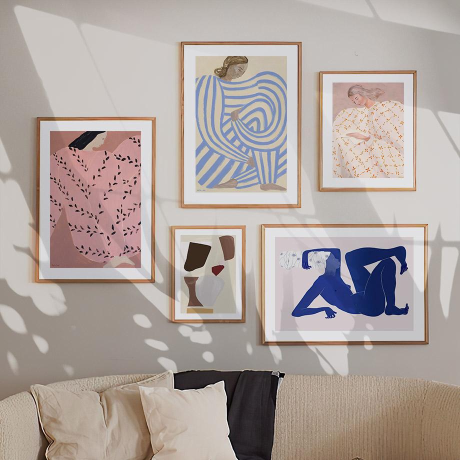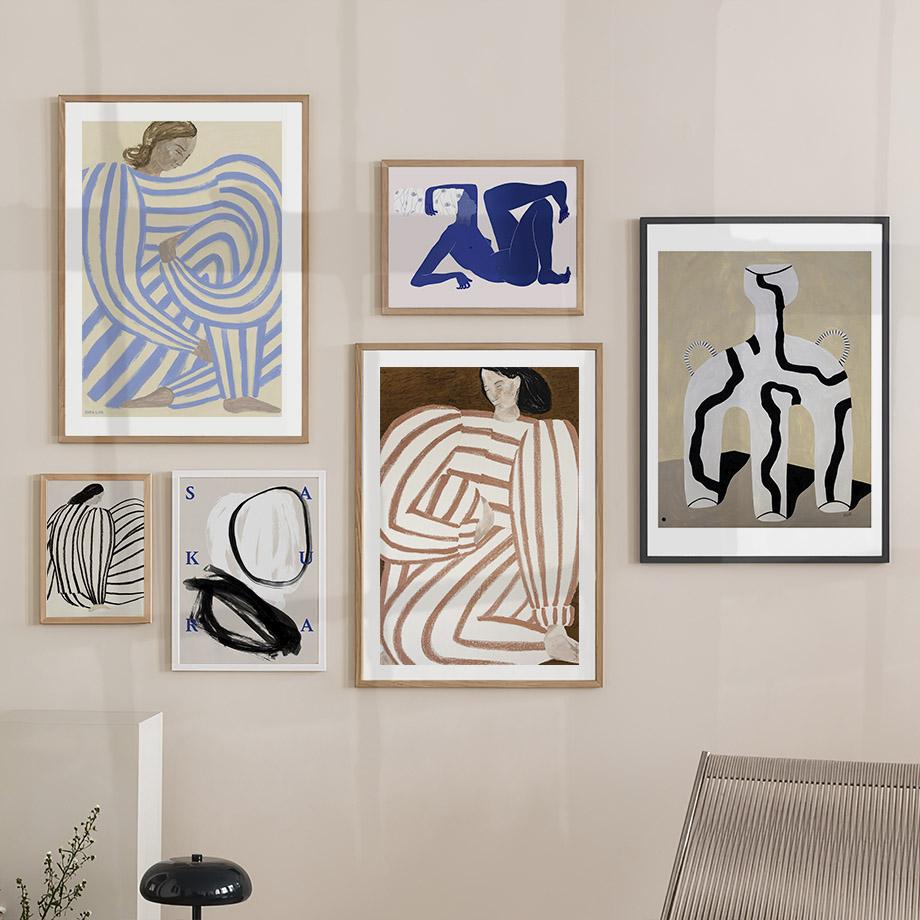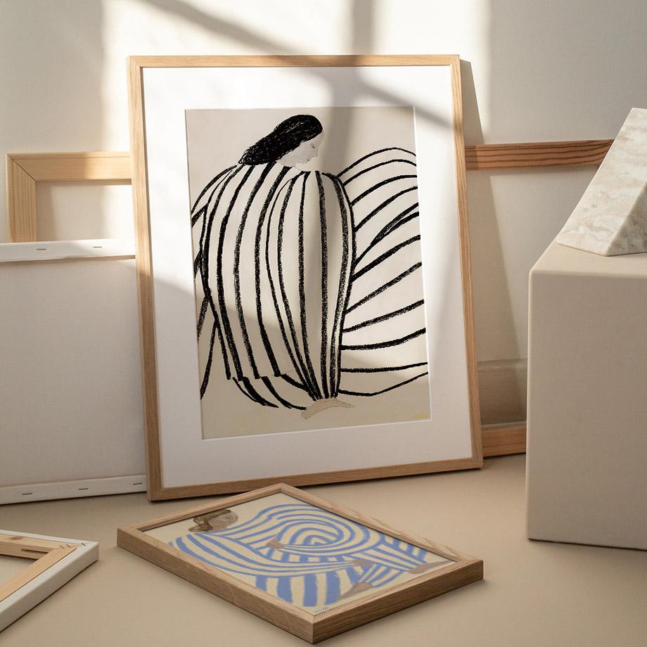 Абстрактная полосатая девушка линия минималистичное настенное искусство холст живопись скандинавские постеры и принты настенная картина для гостиной домашний декор