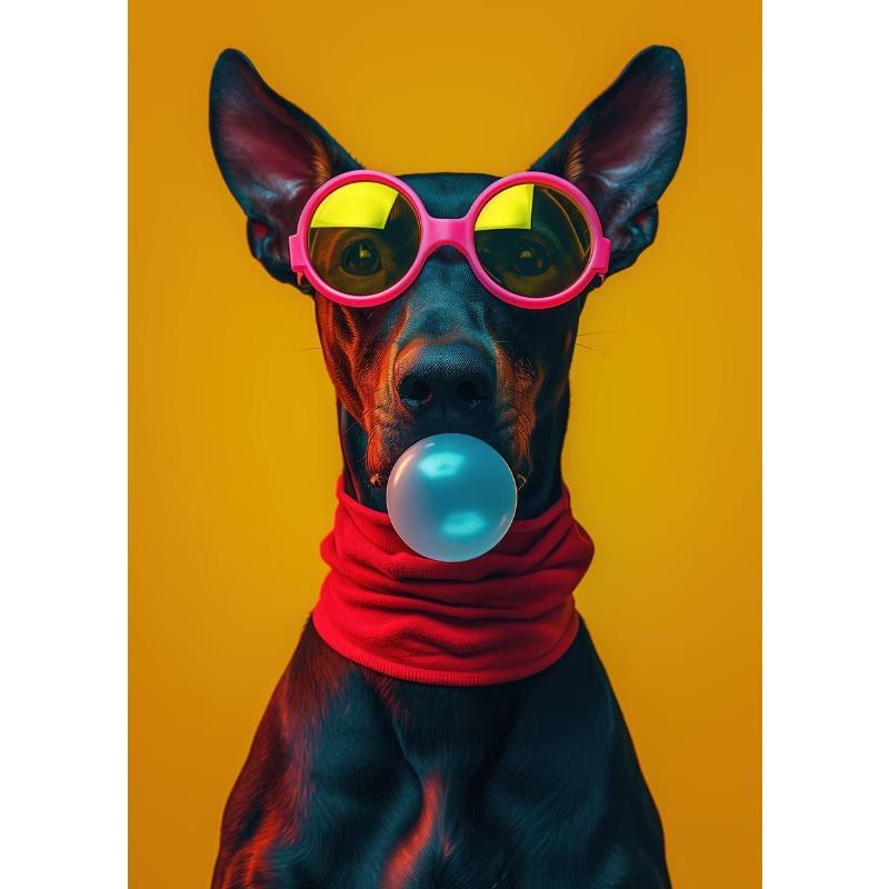 Веселый И Смешной Милый Пес В Очках И Пускающий Пузыри Художественный Постер Холст Принты Фреска Гостиная Спальня Украшение Дома