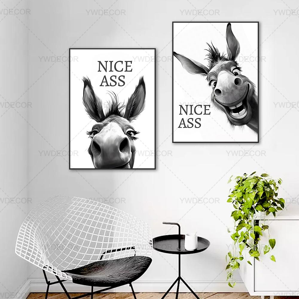 Абстрактный Забавные Животные Осел Постер Принт Живопись Надпись Nice Ass Холст Настенное Искусство Картинки для Дома Декор для Ванной