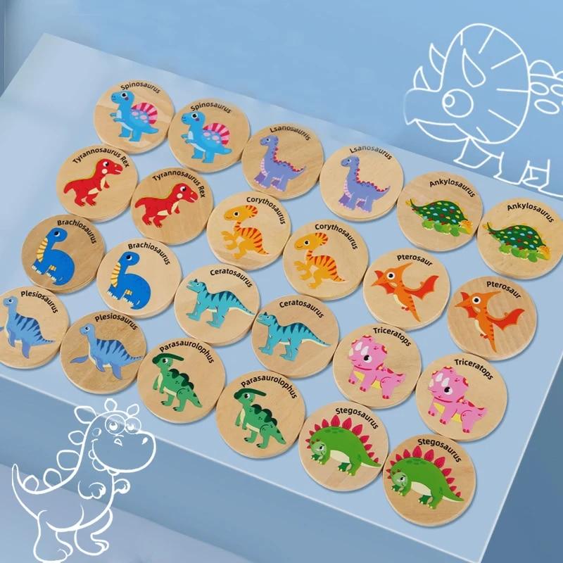 Детская деревянная игрушка Память Найди пару Динозавры Игра-пазл Монтессо Развивающие игрушки для малышей Подарки для детей